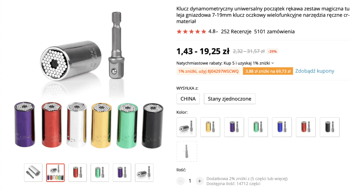 Co jakiś czas w Internecie możemy zobaczyć reklamy takich gadżetów, zwłaszcza gdy przeglądamy Facebooka i Instagrama. Jednym z takich rzeczy jest klucz uniwersalny, który dopasowuje się do odkręcanej śruby. Możemy go zakupić na AliExpress.